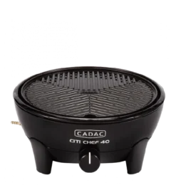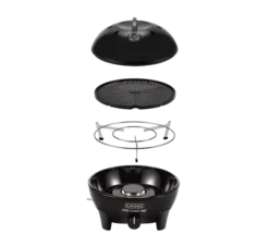 This is a robust compact and portable BBQ for use as a tabletop unit. It has a non-stick ceramic coated cooking grill, made from aluminium so there is perfect heat distribution. The fat pan fits inside an outer pan and is easily removed to wash and clean. A pot stand is included so pots, Cadac paella pan or pizza stone can be used.