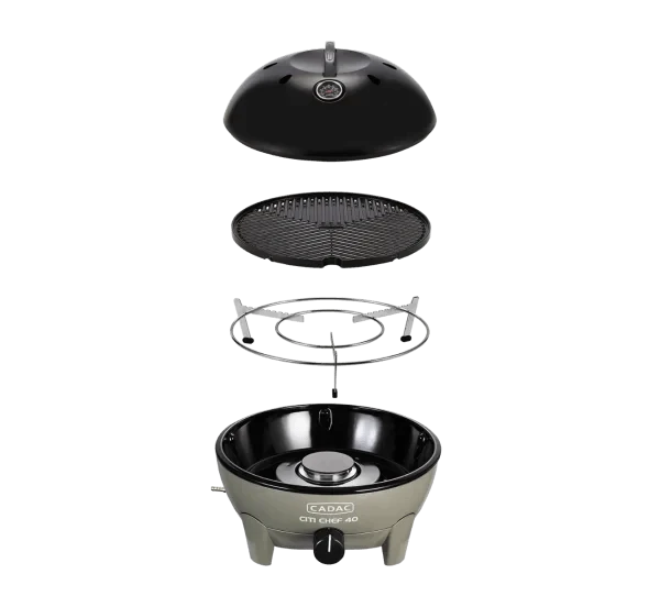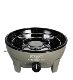 This is a robust compact and portable BBQ for use as a tabletop unit. It has a non-stick ceramic coated cooking grill, made from aluminium so there is perfect heat distribution. The fat pan fits inside an outer pan and is easily removed to wash and clean. A pot stand is included so pots, Cadac paella pan or pizza stone can be used.