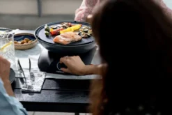Introducing the very first table-top style gas grill with a flat design that can be grilled on from 360° while comfortably sitting at the table. The Campingaz® 360 Grill offers extensive grilling and cooking versatility with an included ribbed griddle, flat plancha as well as a pan support for stove cooking.