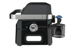 Key product features: Pre-assembled table top grill – no screwdriver required! Front loading grease tray is dishwasher safe, which ensures quick and simple cleaning. Elegantly matte black die cast aluminum lid retains heat and ensures convection grilling.