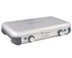 Campingaz’s Camping Kitchen 2 Grill & Go is a compact and versatile cooking & grilling companion. The 2 burner stove with interchangeable searing grids and plancha gives you the flexibility to support all food preparation needs.