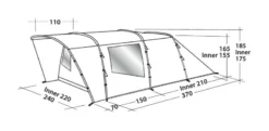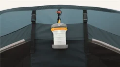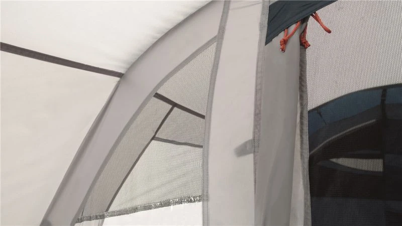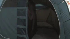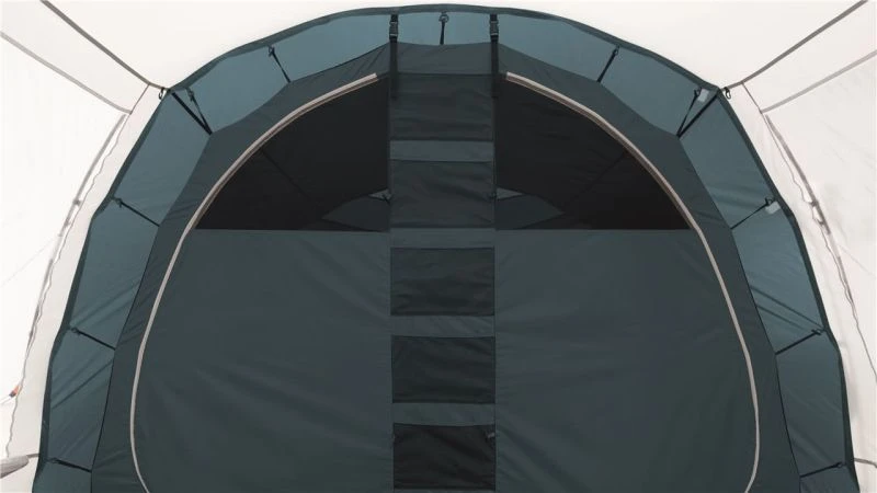 A solid 3,000mm HH waterproof rating is a great spec for the price point and as it has a sewn-in groundsheet the tent inside is sealed away from the wind and rain. Colour co-ordinated poles make it easy to pitch, as seen from our Attwoolls Pitching videos. The bedroom compartment is made from Easy campโs sleep tight material to reduce early morning light and hopefully you donโt wake you when the sun rises. The inner also has storage pockets built into the tent to allow you to locate torches and phones in the middle of the night. Windows are located on either side of the tent to give a view outside and curtains can toggle up into place to provide privacy when needed. Covered ventilation panels are located behind the bedroom section at each end of the tent to increase airflow and help reduce condensation. A toggled inner divider splits up the bedroom section and can be easily removed to make one big sleeping space.