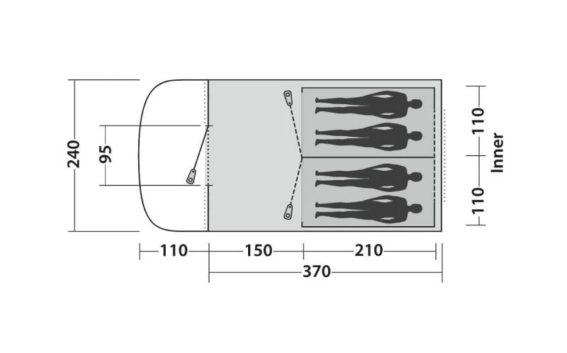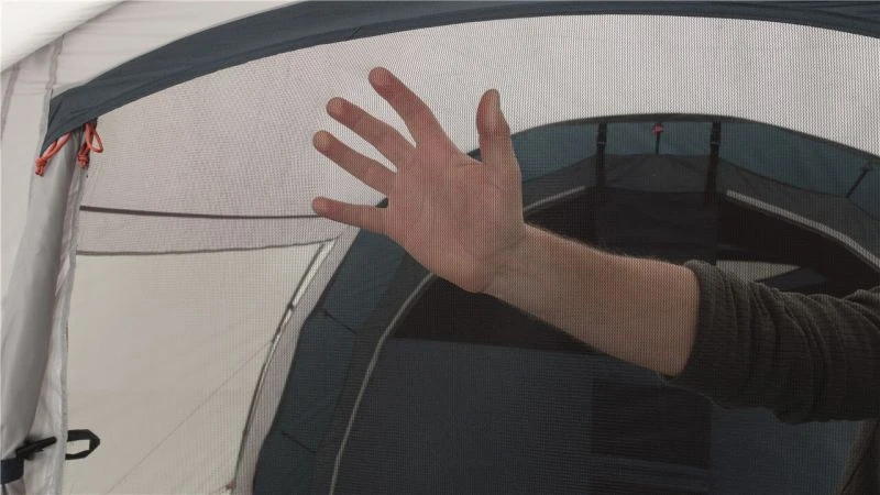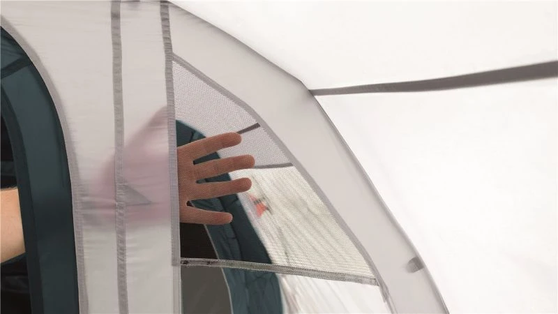 A drop-down front door into the living area gives trip free access into the tent and makes it easier for pushchairs to enter. This same entrance has a mesh door built into it so you can increase the airflow inside the tent without having any insects join the party. The pre-angled poles help to increase the internal headroom and make the awning feel more spacious in relation to the floorplan.