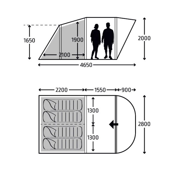 - Covered entrance – gives a sheltered entrance to your tent, which prevents rain from dripping into the living area