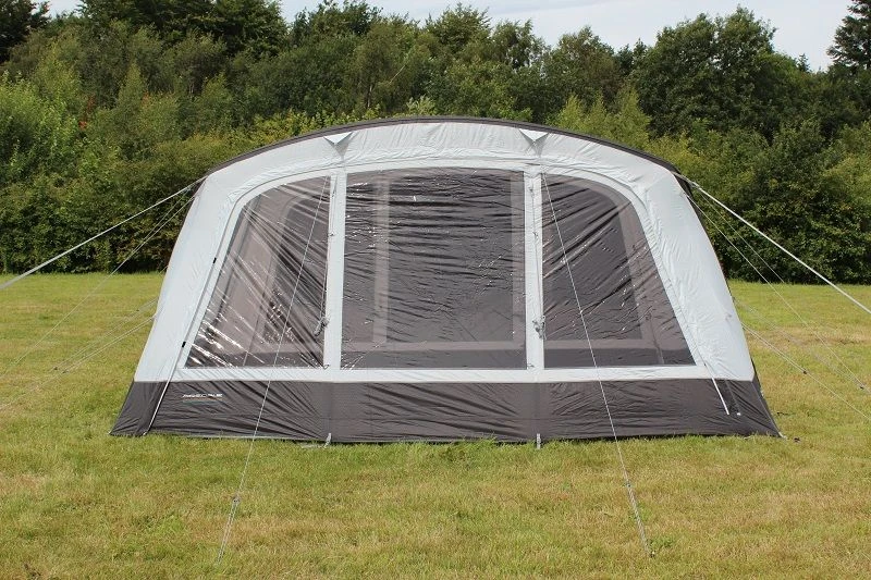 The Outdoor Revolution Airedale 6S & 6SE Front Awning is designed to zip on to the front of this model, in order to considerably extend usable living or storage space from the integral porch area, providing a windowed utility space for cooking or relaxing, with an excellent vista of the outside world and complete protection against the elements, to maximise enjoyment on rainy days. This tunnel canopy incorporates our famed oxygen airframe inflation system, utilising a single inflation point dynamic speed valve, making pitching swift and effortless;ย an exclusive pressure relief valve prevents damage to the tube by expelling any excess air, typically caused by overinflation or sudden changes in the ambient temperature. All of our valves are discretely concealed by a velcro cover.ย We have also included numerous high visibility guylines and a compact carry bag with this accessory.