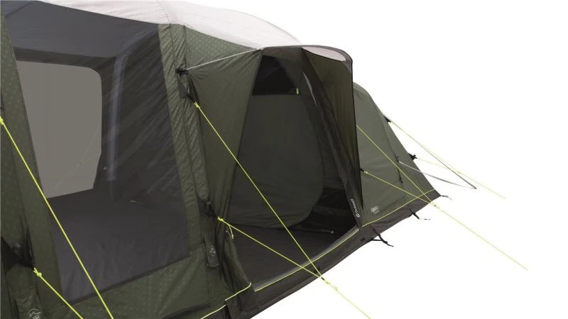The Jacksondale uses Outwellโs Rigid Air System for ease of pitching and stability. You can happily erect this tent within 8/9 minutes (as seen in our Attwoolls Pitching Videos). There are two main bedrooms at the back of the tent that can comfortably accommodate 4 people and will sleep up to 5. The Dark Premier Bedrooms are now even darker thanks to a darker material above the inner; a new Rear Ventilation System increased airflow and helps reduce condensation and can be covered to keep the bedroom nice and dark.