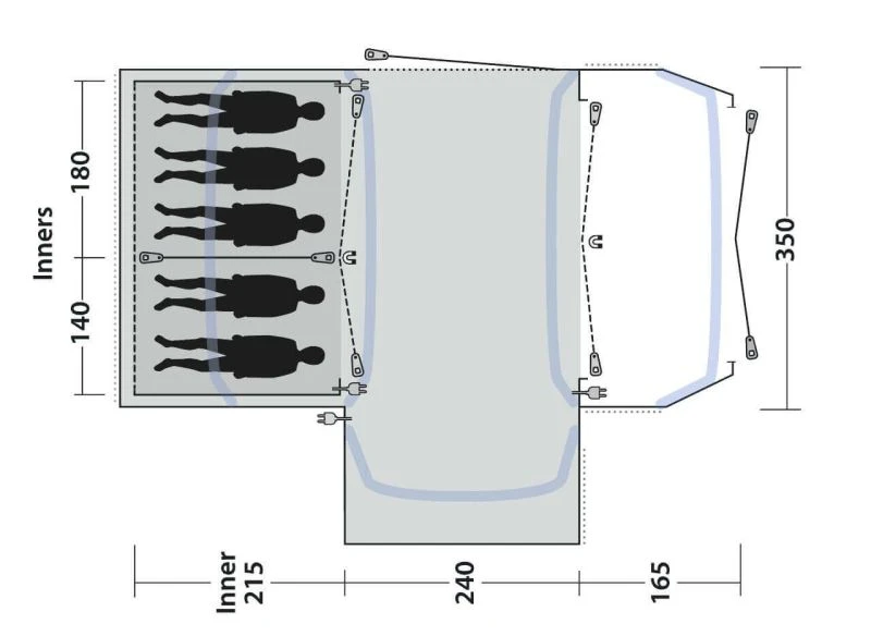 - Reliable, easy-to-operate inflate/deflate valves conveniently placed outside the flysheet