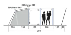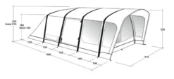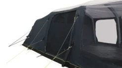 The tent is easily to pitch thanks to Outwellโs Power Air System as the tent can be inflated and pitched within 12 minutes (as seen from our Attwoolls Pitching Video). The tent is a bit of a hybrid as the front canopy has a 19mm steel pole which simply zips into a sleeve on the front of the tent. Deeper than normal bedrooms (230cm) provide ample room for camp beds and high-rise airbeds where other tents fall short and this twinned up with the dark bedroom material should allow you to have a perfect nightโs sleep. A large ventilation vent helps to increase airflow and can also be used a rear window when left open.