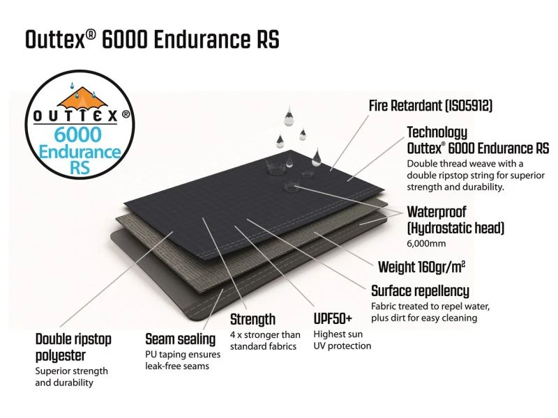 - Flysheet: Outtexยฎ 6000 Endurance RS, 100% polyester