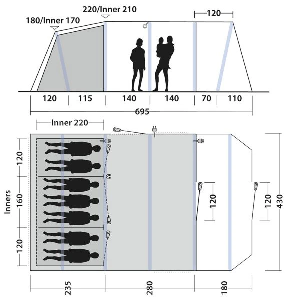 - Reliable, easy-to-operate inflate/deflate valves conveniently placed outside the flysheet