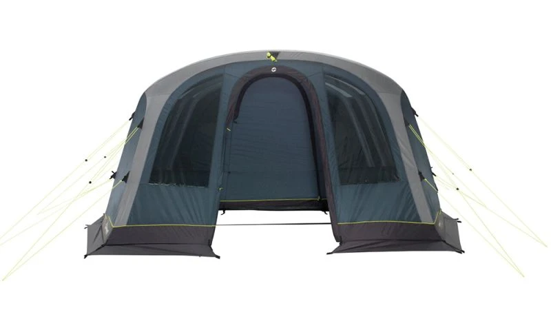 Ventilation is a key theme of the tent and to maximise air flow the Stonehill has a large vent located behind the bedrooms. This vent helps to reduce condensation as well as give a view out from the back of the tent on a sunny day. This twinned with a side mesh door and the mesh windows, it doesnโt matter what midges try and do, they havenโt got the ability to come in to join the party! If you are looking to extend the tent an optional Outwell Canopy Tarp can be purchased which helps to give a bit more shelter on variable weather days.