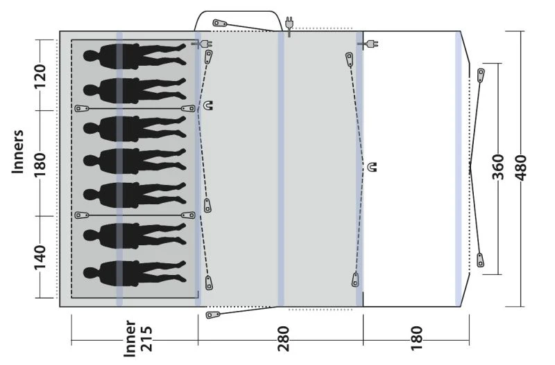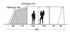 Technical Specifications - Type of tent:ย Four-room tunnel tent