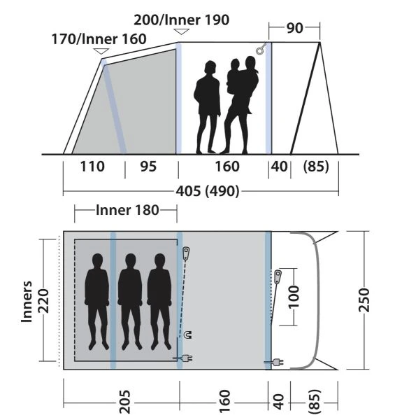 - Reliable, easy-to-operate inflate/deflate valves conveniently placed outside the flysheet