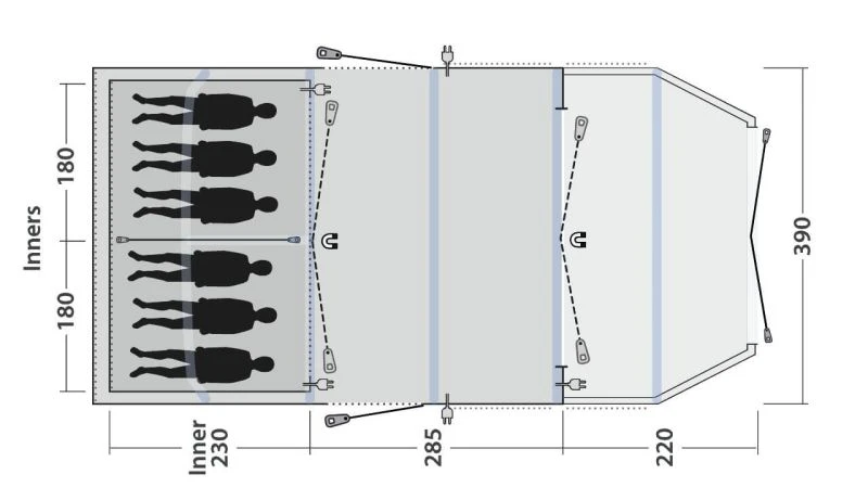 - Reliable, easy-to-operate inflate/deflate valves conveniently placed outside the flysheet