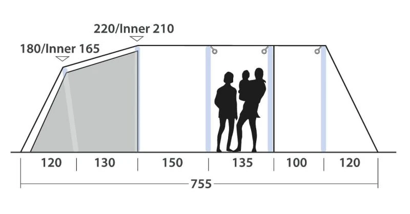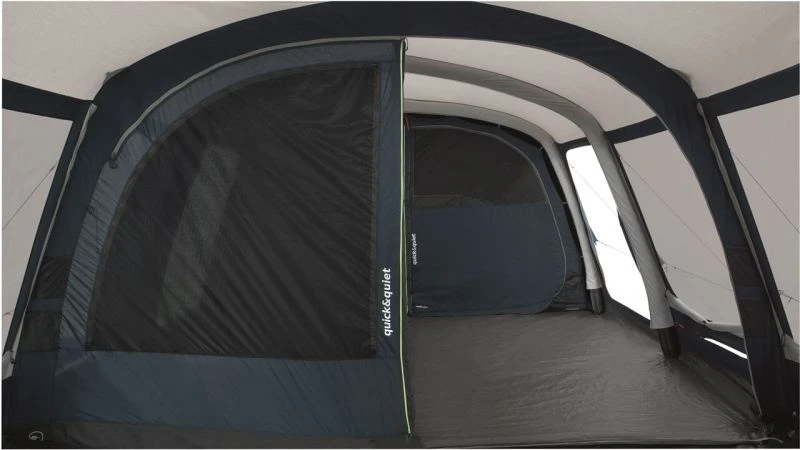 This tent actually has certain features that you don’t see in other brandโs tents, such as Outwellโs new HookTrack System which allows you to create a hanging point anywhere along the beam and because the Hook simply clips on, it has never been easier to hang a light or a storage unit. There is also Outwell’s iconic โQuick & Quietโ bedroom access which give you easy access to the bedroom compartment without making a noise; this feature is also now on the living room door.