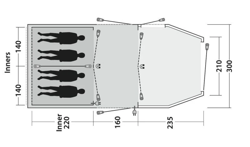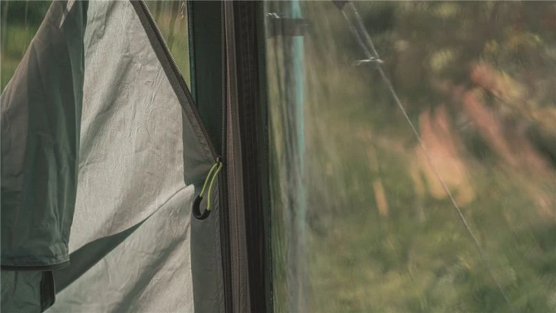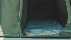 Not only does the tent come with high-vis guylines, but also โStorm Tiesโ Velcro around the 19mm steel poles to make sure the fabric and poles are tensioned together, while storm straps are provided front and back to increase stability. Outwell have really gone to town on including things like their own HookTrack System to give you the option to have a hanging point for lights or storage pockets throughout the tent. โQuick & Quietโ Access doors are located on the bedroom compartment and the living room door. Premier Bedrooms which are nice and dark and have a Rear Ventilation System built in to increase the airflow and help reduce condensation (this can be covered to keep the bedroom nice and dark if needed).