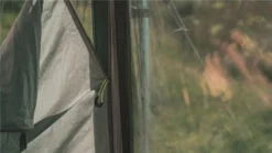 Throughout the tent there three main zones for cooking, living and sleeping. Each zone flows easily into the next and can be positioned to your desired setup. Large tinted PVC windows give plenty of light into the tent and visibility out; below the window are zip up curtains to get privacy when needed and can be adjusted to give as much or as little light as you want. If the tent isnโt big enough an additional front awning can be added onto the tent to make it bigger while retaining a more manageable pack size & weight.