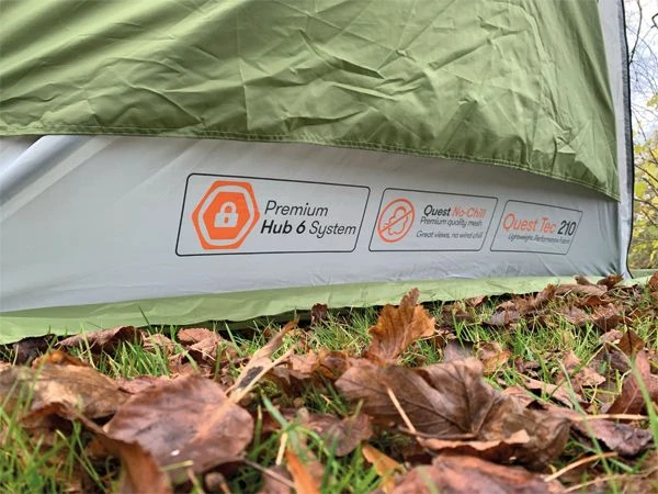 It has all the benefits from the premium Quest No-Chill mesh panels, with additional sewn in and fully zipped Quest-Tec 210 sidewalls. This gives you an unrivalled amount of options. You can roll the sidewalls down for complete privacy. Open the external blinds on the windows to allow light and views in, or roll the entire sidewall up to reveal the premium quest No-Chill mesh sides allowing it to be warmer in the wind and cooler in the sun.