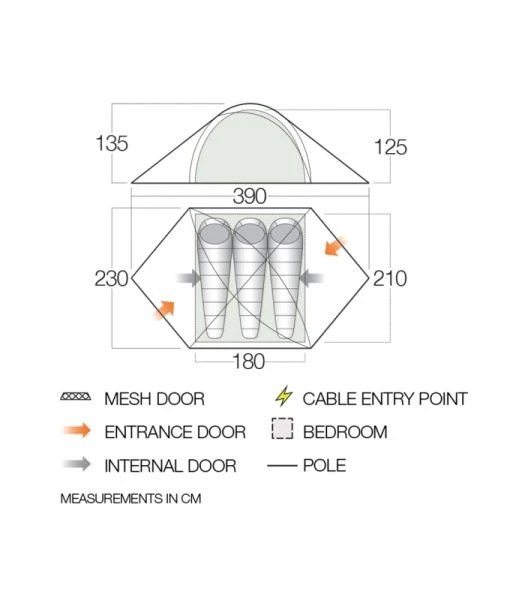 - Flysheet door vent – Open from the top to ventilate porch