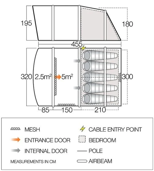 - AirBeamĀ® Pump, Pegs, carry bag & guy-ropes included