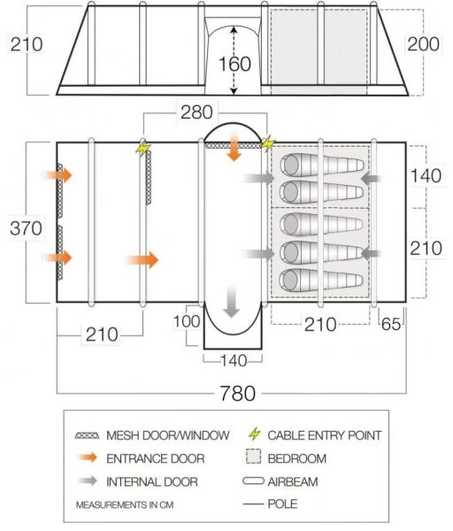- High Cable Entry – Allows you to neatly run electrical cables out into the awning area at the front of the tent