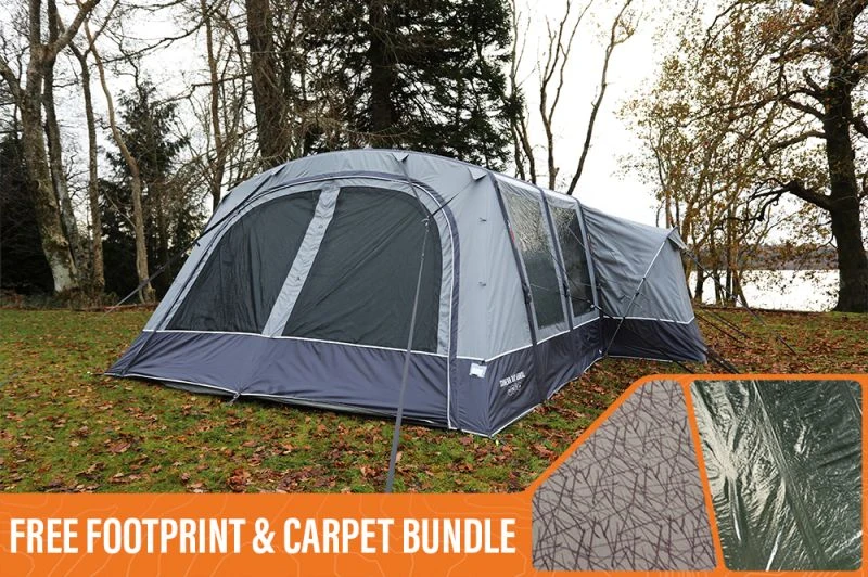Vangoโs Soneva 550XL has a multi-functional front door that allows it to be put in different positions to give as much shelter as you want away from the weather. A groundsheet for the front section can be purchased with the footprint so that you can completely enclose the front area. The divisional door between the living area and awning area can be zipped back completely so that suddenly you have one big open living space. The lip between the sections also folds down to create a trip-less walk through ideal for push chairs or wheel chairs. As the Air 550XL tent can be pitched and packed away with ease it doesnโt stop you using it for a weekend let alone a week. Why not check out our own Attwoolls Outdoors Pitching Video to see how simple it really is?