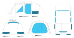 - Material Features – Sewn-In Groundsheet, Tinted Skylight, Carpet Attachment Rings