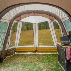 - Awning Features – 3 Stage Door, Awning Poles Included, All-Weather Access, Extended Awning Area, Roll Up Awning Door, Removable Anchor Webbing, Rain Skirt Fold Away Toggles, Rain Skirt, Gullwing Awning, Twin Access Awning Doors