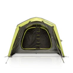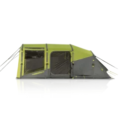 Zempire’s Sero-Link AirFrame System gives all of the structural strength of an Inflatable tent but without the bulk and weight. This is achieved by inventing a revolutionary new way of keeping the inflatable tubes in the tent. The open canopy on all of the Evo’s can be enclosed by purchasing the additional Front Awning Wall Kit. The kit is a black panel that has two side doors built into it, a full-frontal mesh door and some king poles. Both the front door and the mesh door can be attached at the same time giving the option to have the tent how you like it. The mesh door can be zipped on and left in place while the main door (which is in front of the mesh) can then be made into a Canopy (Gullwing Door) with the king poles included in the pack.
