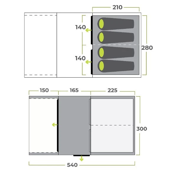 - Configuration Features – Internal Living Area, Removable Inner, Bedroom Dividing Curtain
