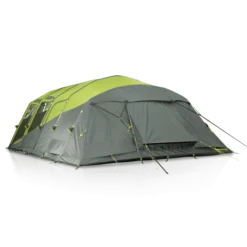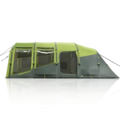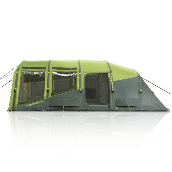 Zempire’s Sero-Link AirFrame System gives all of the structural strength of an Inflatable tent but without the bulk and weight. This is achieved by inventing a revolutionary new way of keeping the inflatable tubes in the tent. The open canopy on all of the Evo’s can be enclosed by purchasing the additional Front Awning Wall Kit. The kit is a window panel that has two side doors built into it, a full-frontal mesh door and some king poles. Both the front door and the mesh door can be attached at the same time giving the option to have the tent how you like it. The mesh door can be zipped on and left in place while the main door (which is in front of the mesh) can then be made into a Canopy (Gullwing Door) with the king poles included in the pack.